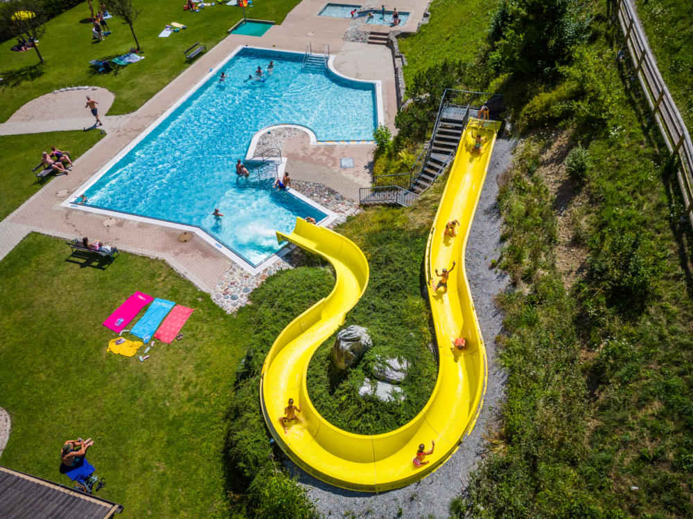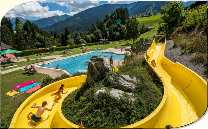 Einen Steinwurf (5 Gehmin.), von unserem kleinen Berghotel bzw. Haus Bergblick entfernt befindet sich das solarbeheizte Erlebnisbad Lesachtal. Als Hotelgast genießen Sie freien Eintritt in das Erlebnisbad 35 m Wasserrutsche Schwimmbecken: Wassertiefe 90 - 135 cm, Beckenlänge: ca. 20 m Zwei Kleinkinderbecken: Wassertiefe max. 40 cm Wassertemperatur: max. 24° C große Liegewiese Kinderfreundlicher Spielplatz ohne Autoverkehr. Hier können sich Badehungrige so richtig austoben und relaxen.
