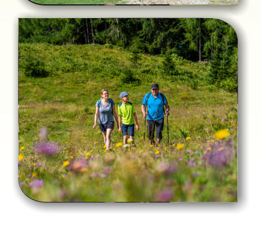 Wanderservice Persönliche Wanderinfo´s mit Kartenmaterial, Wandertaxi, Trockenraum und Schuhputzmöglichkeit, Lunch-Paket. Auf Wunsch erhalten Sie ein Sonnenaufgang-Frühstück, um beim Erwachen der Alpenwelt rechtzeitig mit dabei zu sein. Ihr Auto hat auch Urlaub Wanderungen direkt vom Berghotel weg: Steineckenalm Mittagskofel Lumkofel Klebaser Rundweg Panoramaweg Riebenkofel Gailwanderung Hundstrichsee Gamskofel Lackenalm Oberrasteralm .... Besonders kinder- und familienfreundlich: Abenteuer- und Walderlebnisweg Märchencamp Kinderwagenwanderung an der Gail