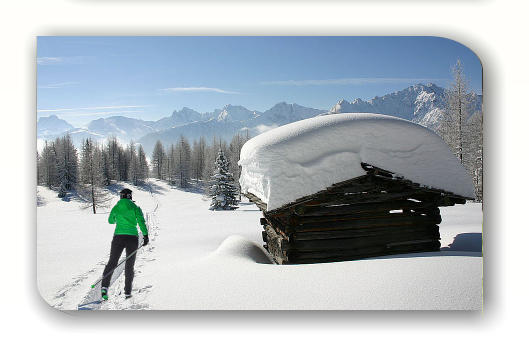 Winterwanderparadies und idyllisch Der märchenhaften verschneiten Landschaft wurde der sanfte Wintersport in die Wiege gelegt. Auf moderne Aufstiegshilfen und künstliche Beschneiungsanlagen wurde in unserem Tal in den letzten Jahren ganz bewusst verzichtet, um Ihnen auch heute noch Winterromantik in ihrer natürlichsten und reinsten Form zu bieten.